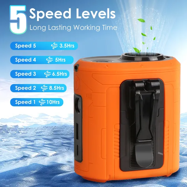 B-READY 5 In 1 Portable Waist Clip Fan With 5 Speeds Flashlight Battery Operated Personal Wearable Turbo Belt Fan Hands-Free Neck Fan For Camping Travel Job Site B-PREPARED 2026